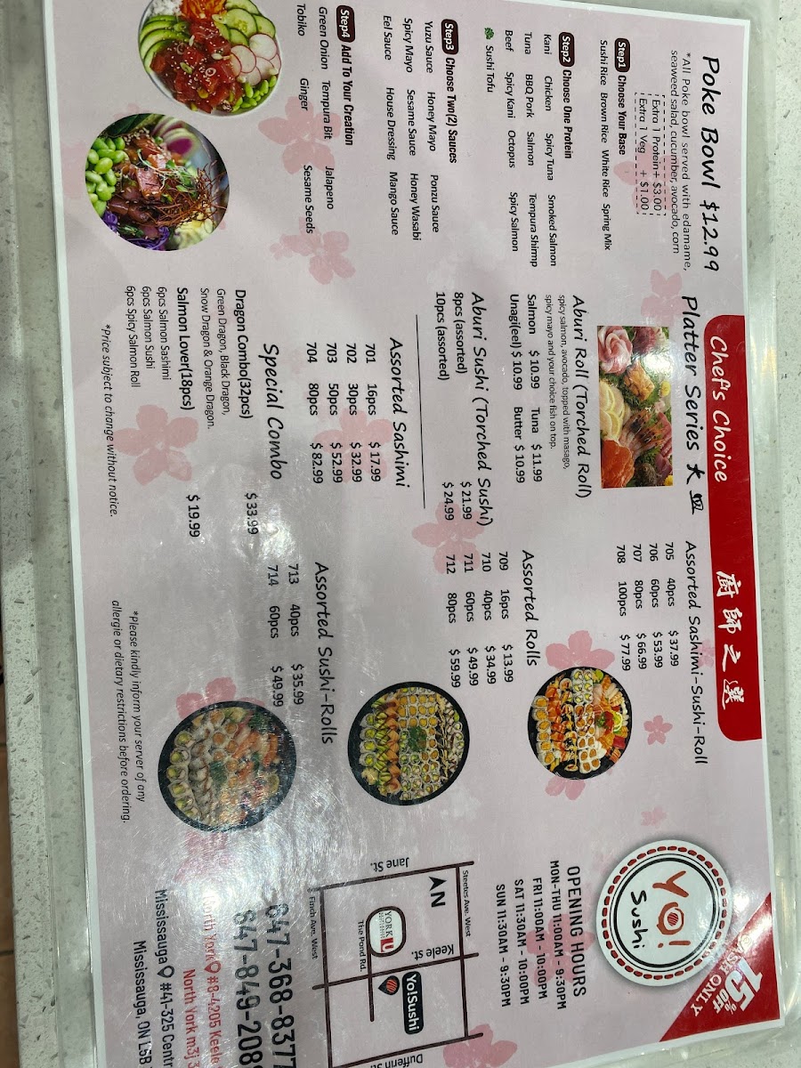 Welcome to YO!Sushi, your go-to destination for fresh and delicious sushi in North York, Canada. Located at 4205 Keele St unit8, this vibrant eatery offers a diverse menu that caters to sushi lovers of all types.
